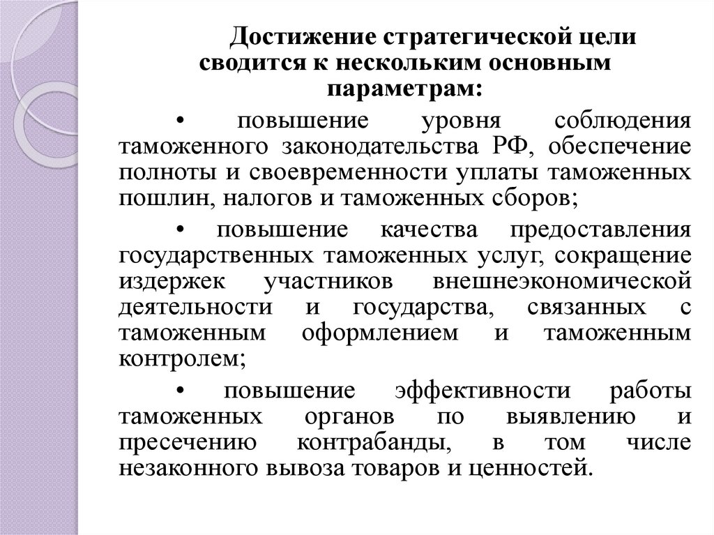 повышения организованности таможенной системы