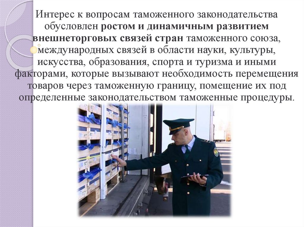 Интерес к вопросам таможенного законодательстваобусловлен ростом и динамичным развитием