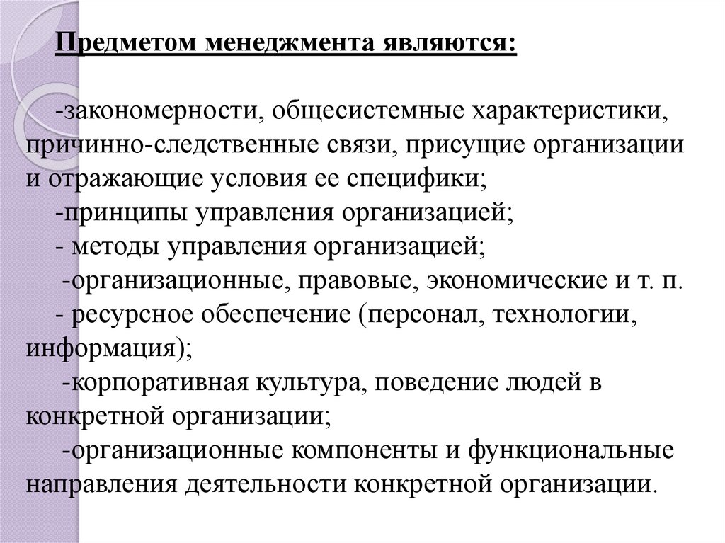 Предметом менеджмента являются:-закономерности, общесистемные характеристики,