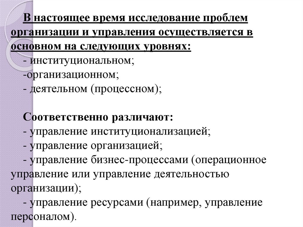 В настоящее время исследование проблеморганизации и управления осуществляется в