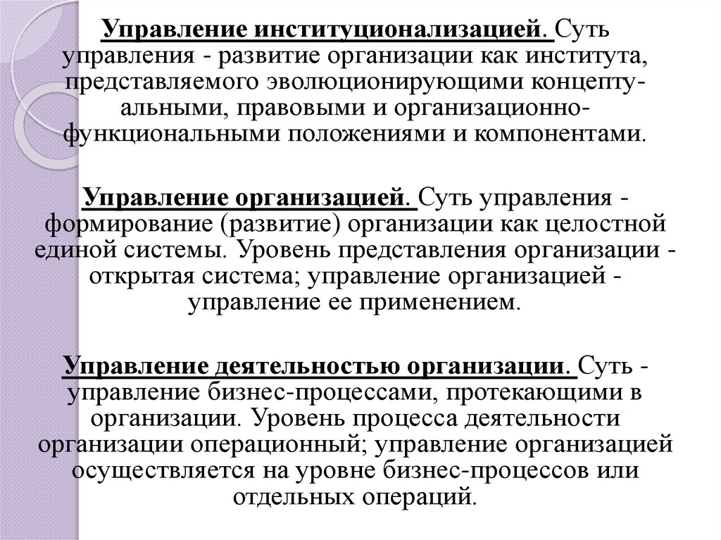 Управление институционализацией. Сутьуправления - развитие организации как института,