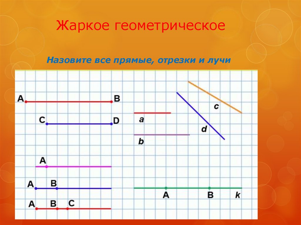 Жаркое геометрическоеНазовите все прямые, отрезки и лучи