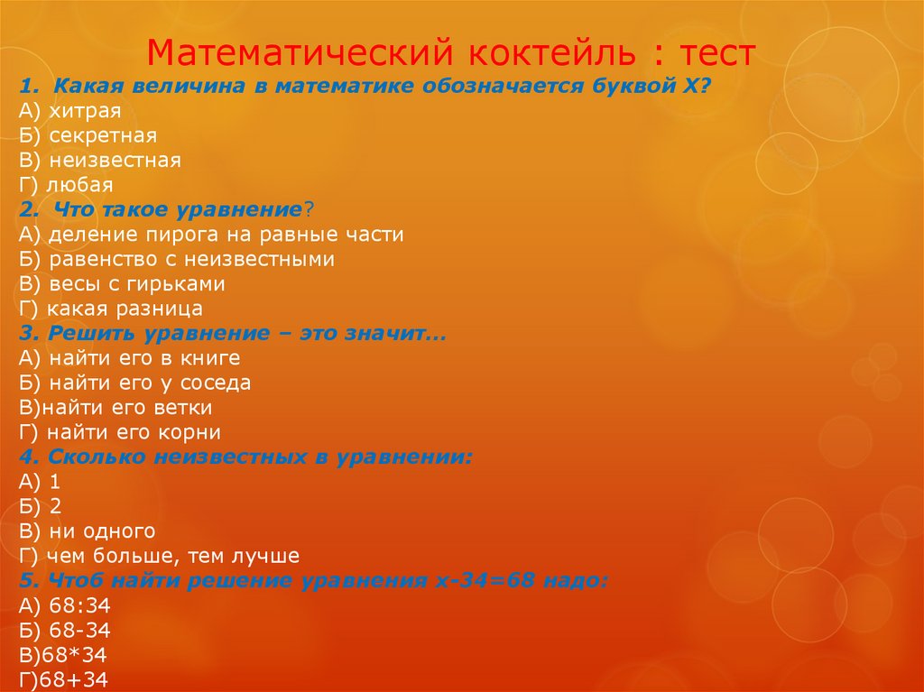 Математический коктейль : тест1. Какая величина в математике обозначается буквой Х?