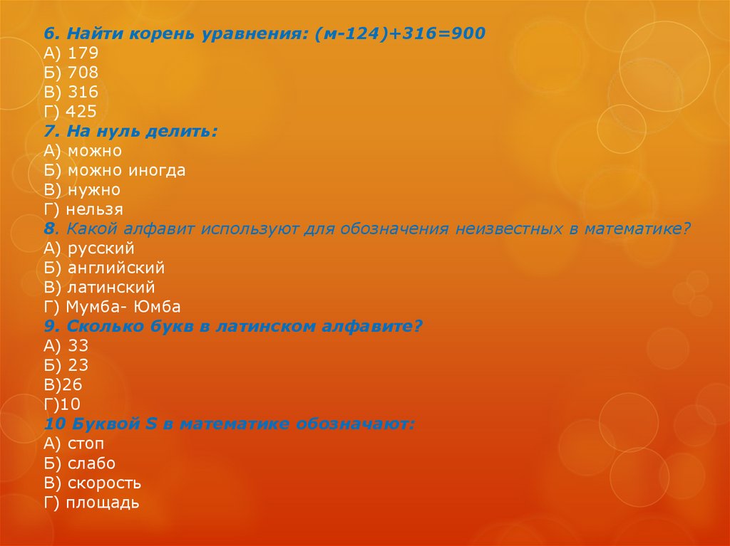 6. Найти корень уравнения: (м-124)+316=900А) 179