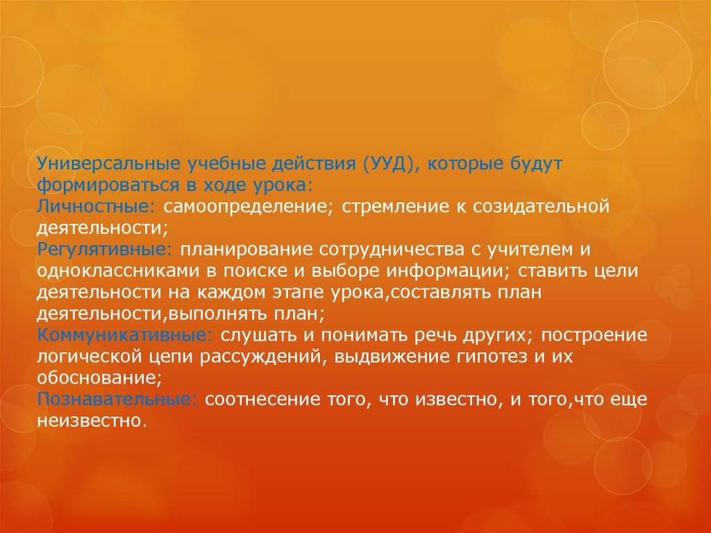 Универсальные учебные действия (УУД), которые будутформироваться в ходе урока: