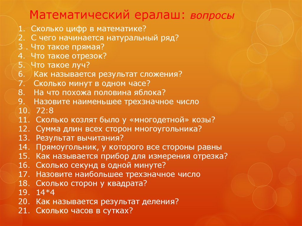 Математический ералаш: вопросы1. Сколько цифр в математике?