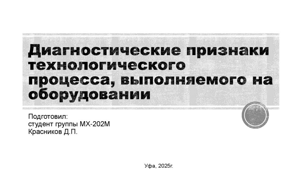 1. Диагностические признаки технологического процесса, выполняемого на оборудовании