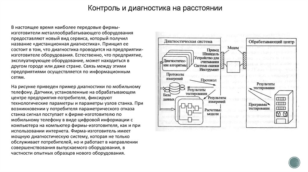 Контроль и диагностика на расстоянииВ настоящее время наиболее передовые фирмыизготовители металлообрабатывающего оборудования