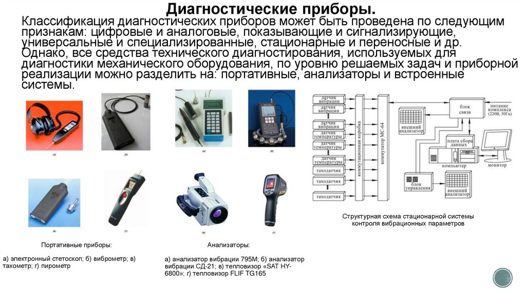 диагностики механического оборудования, по уровню решаемых задач и приборной