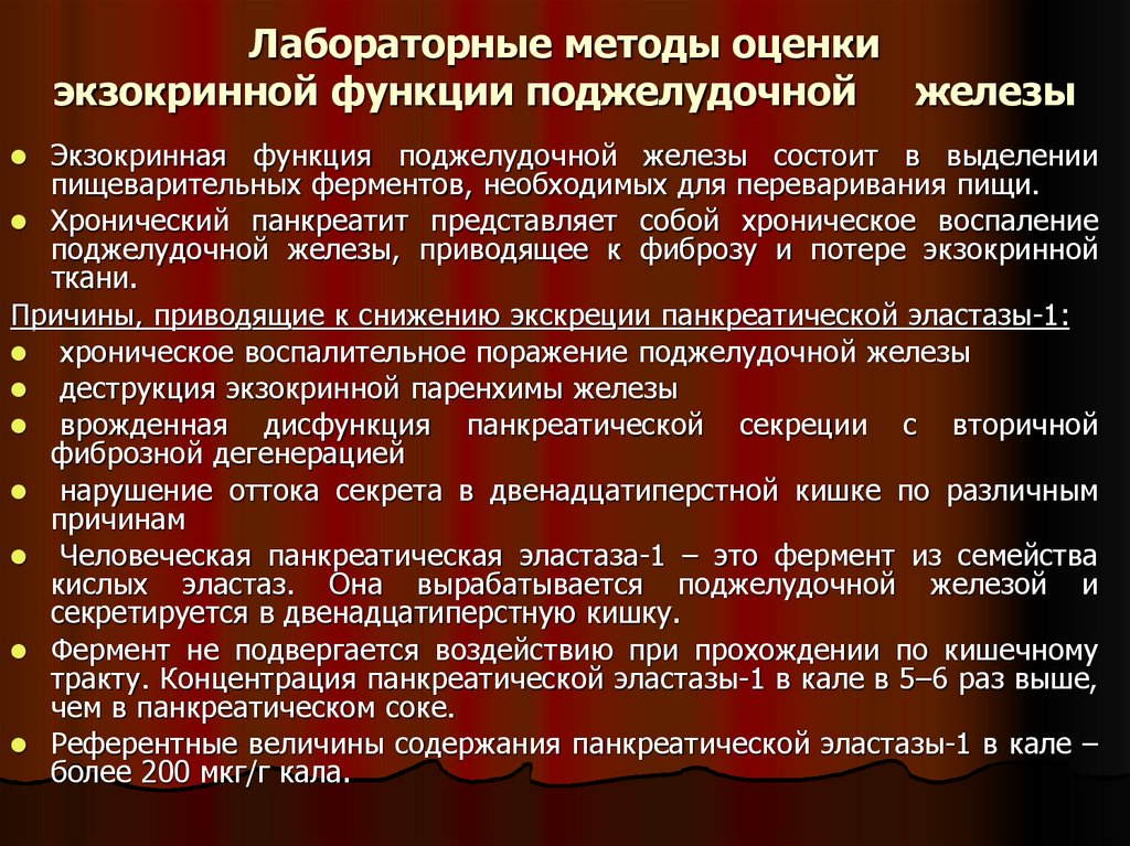тракту. Концентрация панкреатической эластазы-1 в кале в 5–6 раз выше,