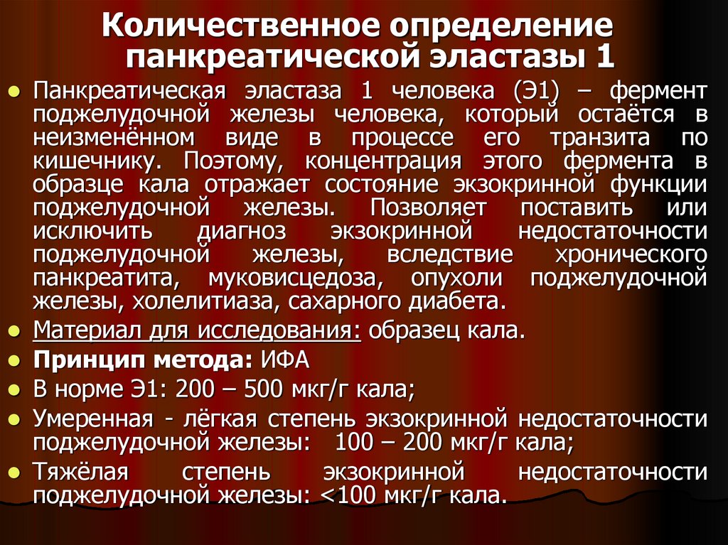 Количественное определениепанкреатической эластазы 1