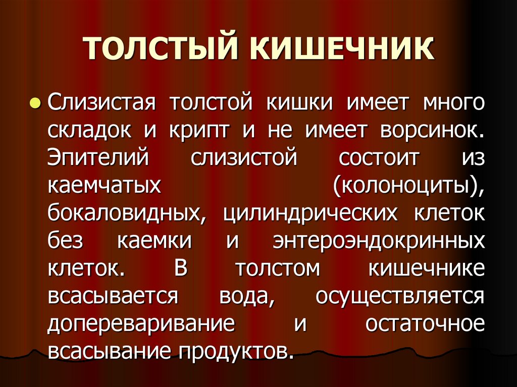 толстой кишки вырабатывается клетками