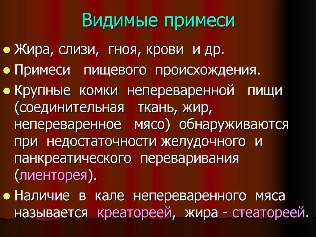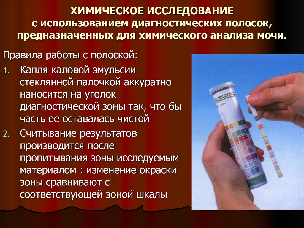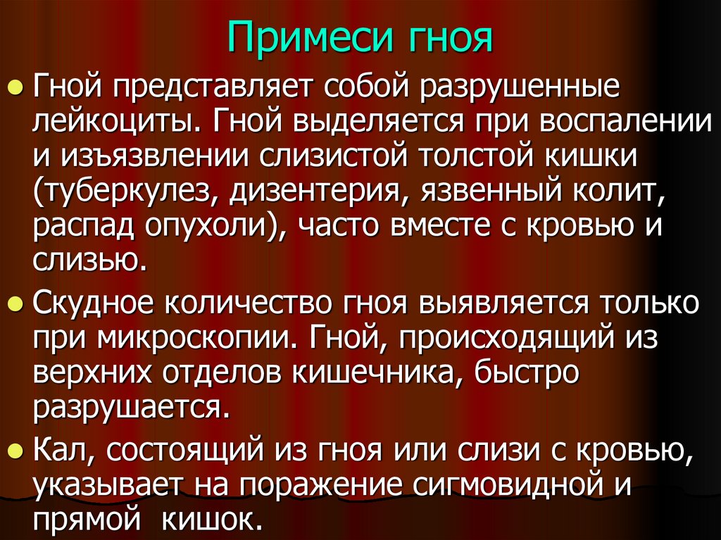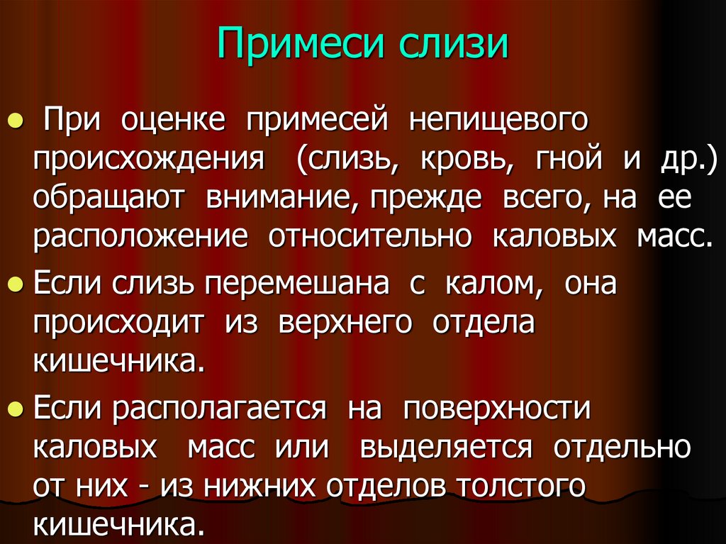 Кал не должен содержать примесей мочи.