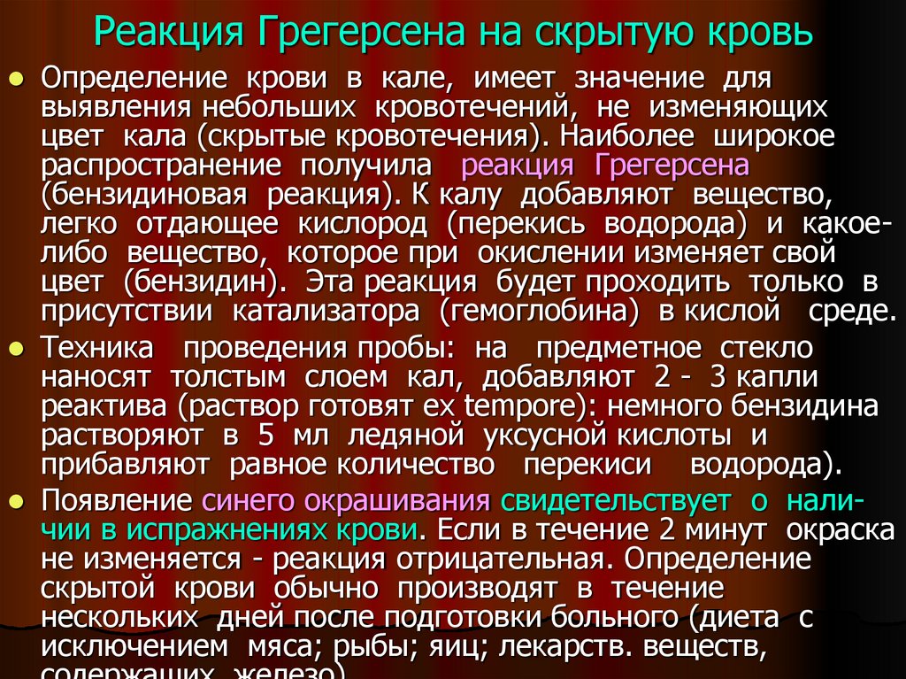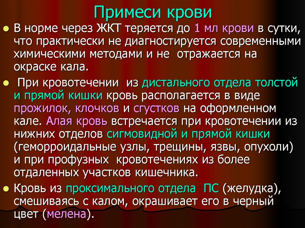 отделов кишечника отмечается красный цвет испражнений.