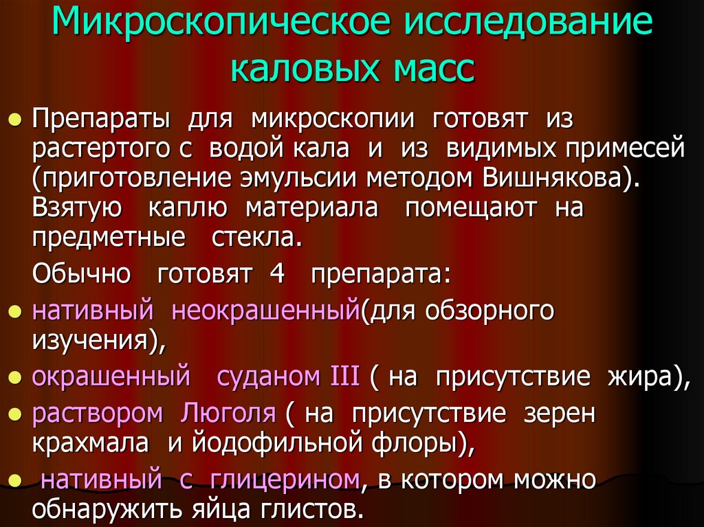 Материал для исследования: образец кала.