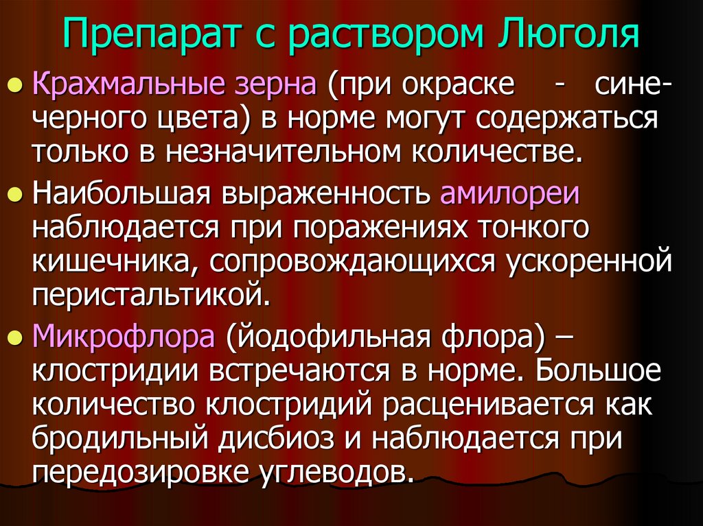 викалин, железо - придают калу черный цвет).