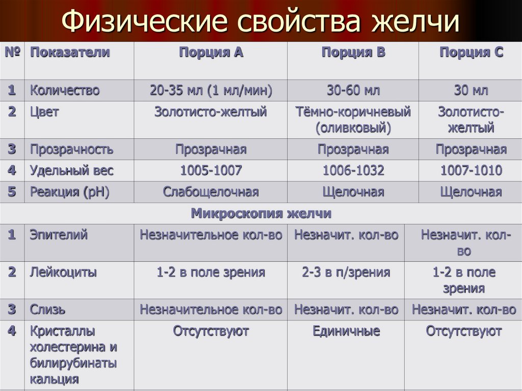 свойства желчи, секрета поджелудочной железы,