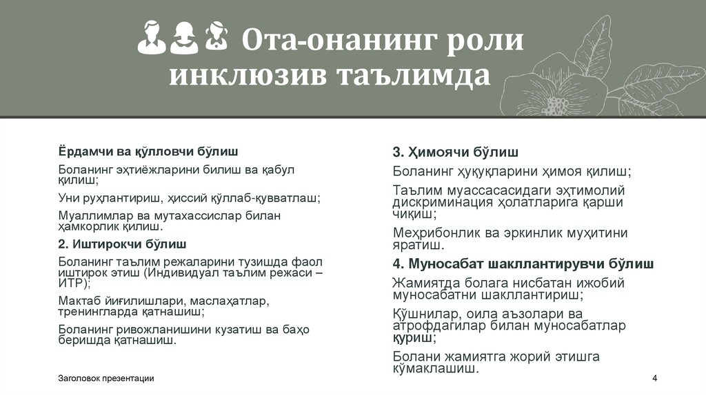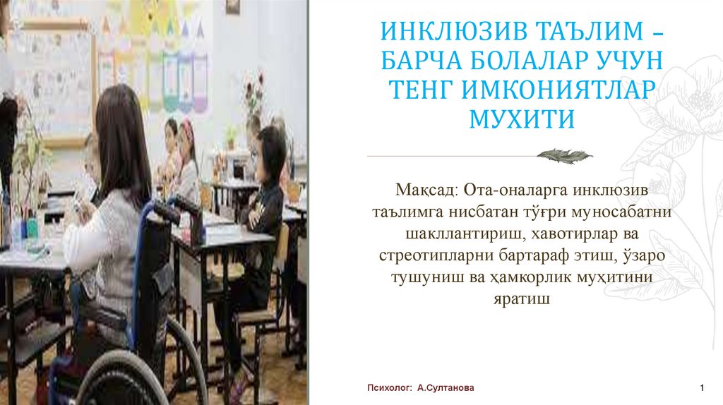 1. ИНКЛЮЗИВ ТАЪЛИМ –БАРЧА БОЛАЛАР УЧУН ТЕНГ ИМКОНИЯТЛАР МУХИТИ