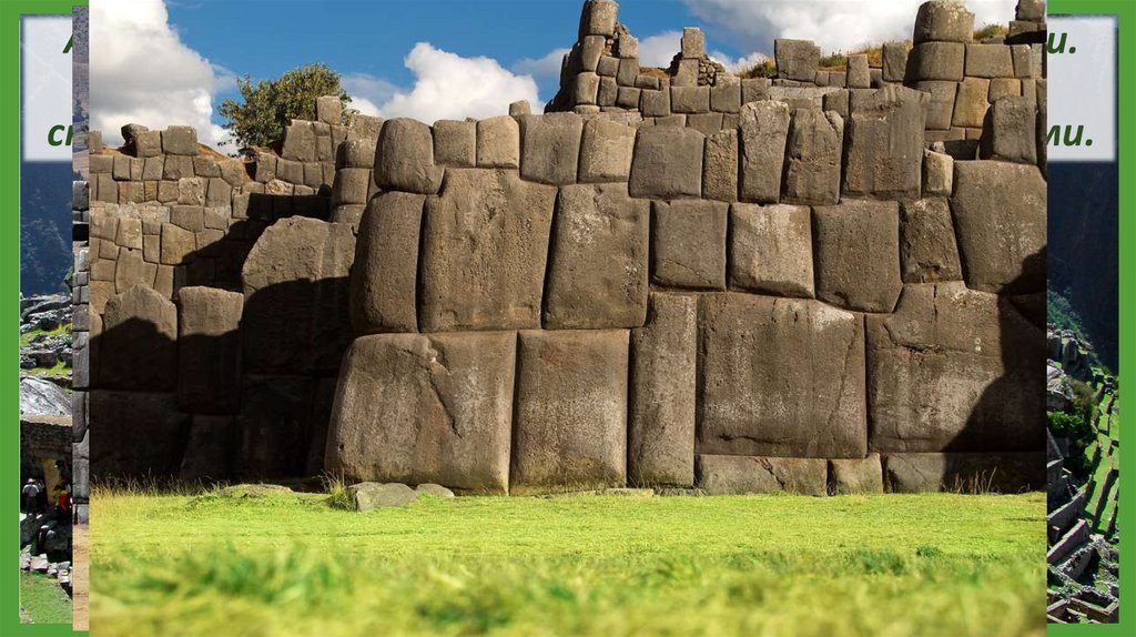 Архитекторы воздвигали храмы, дворцы, крепости.Главная крепость инков в Куско располагалась на