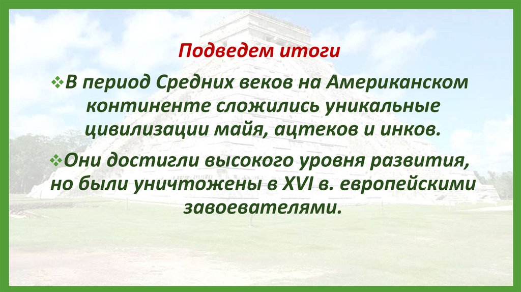 Подведем итогиВ период Средних веков на Американском