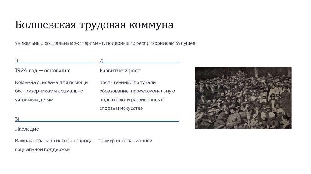 Болшевская трудовая коммунаУникальный социальный эксперимент, подаривший беспризорникам будущее