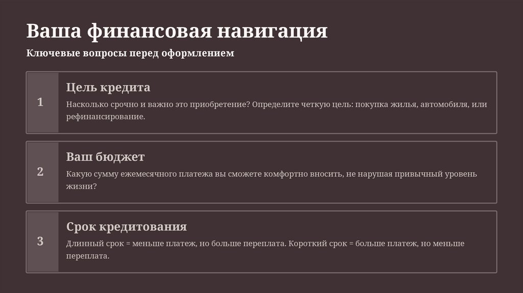 Ваша финансовая навигацияКлючевые вопросы перед оформлением