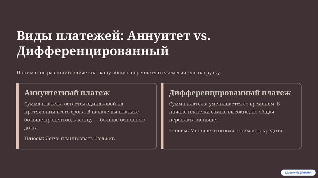 Понимание различий влияет на вашу общую переплату и ежемесячную нагрузку.