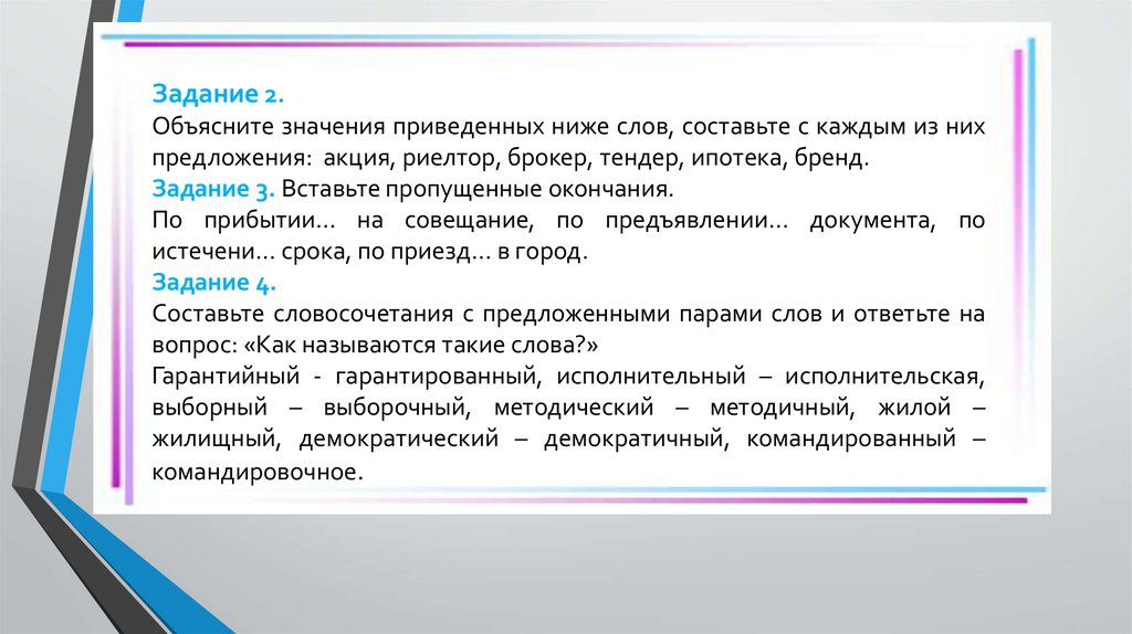 Задание 2.Объясните значения приведенных ниже слов, составьте с каждым из них