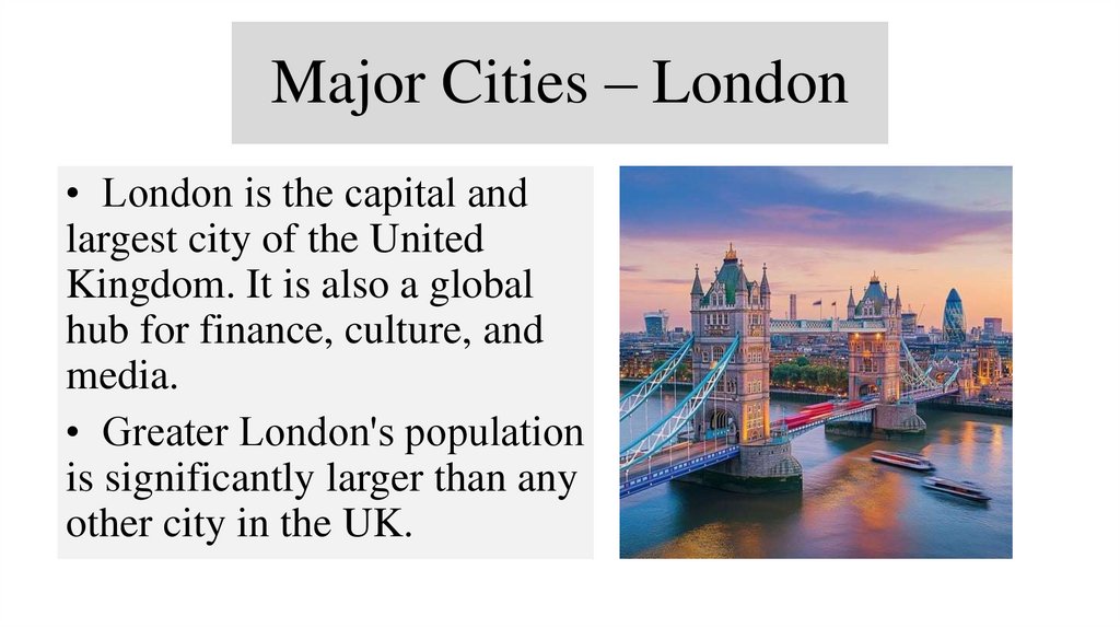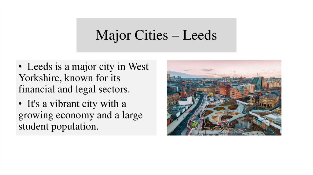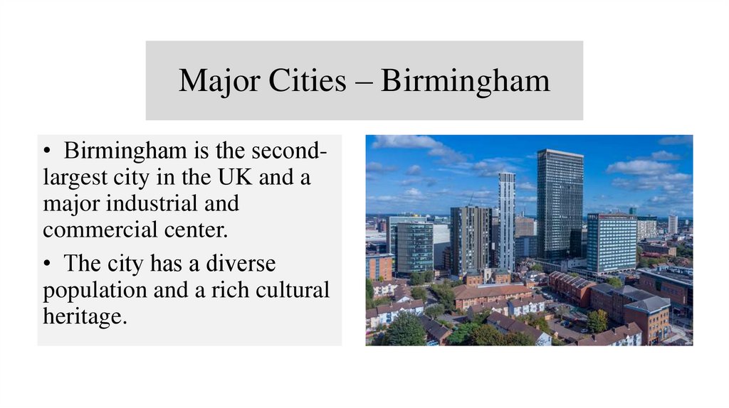 Major Cities – Birmingham• Birmingham is the secondlargest city in the UK and a