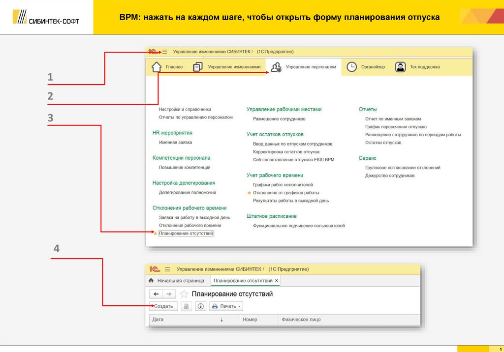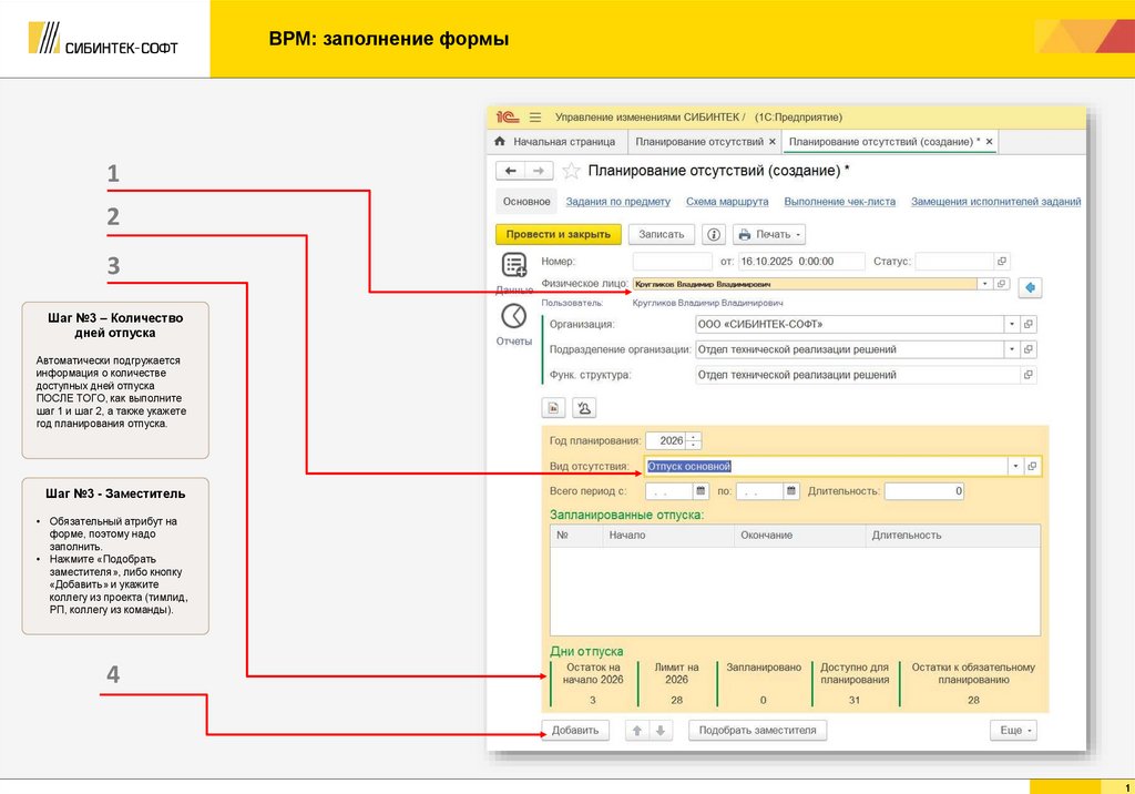 ВРМ: нажать на каждом шаге, чтобы открыть форму планирования отпуска1