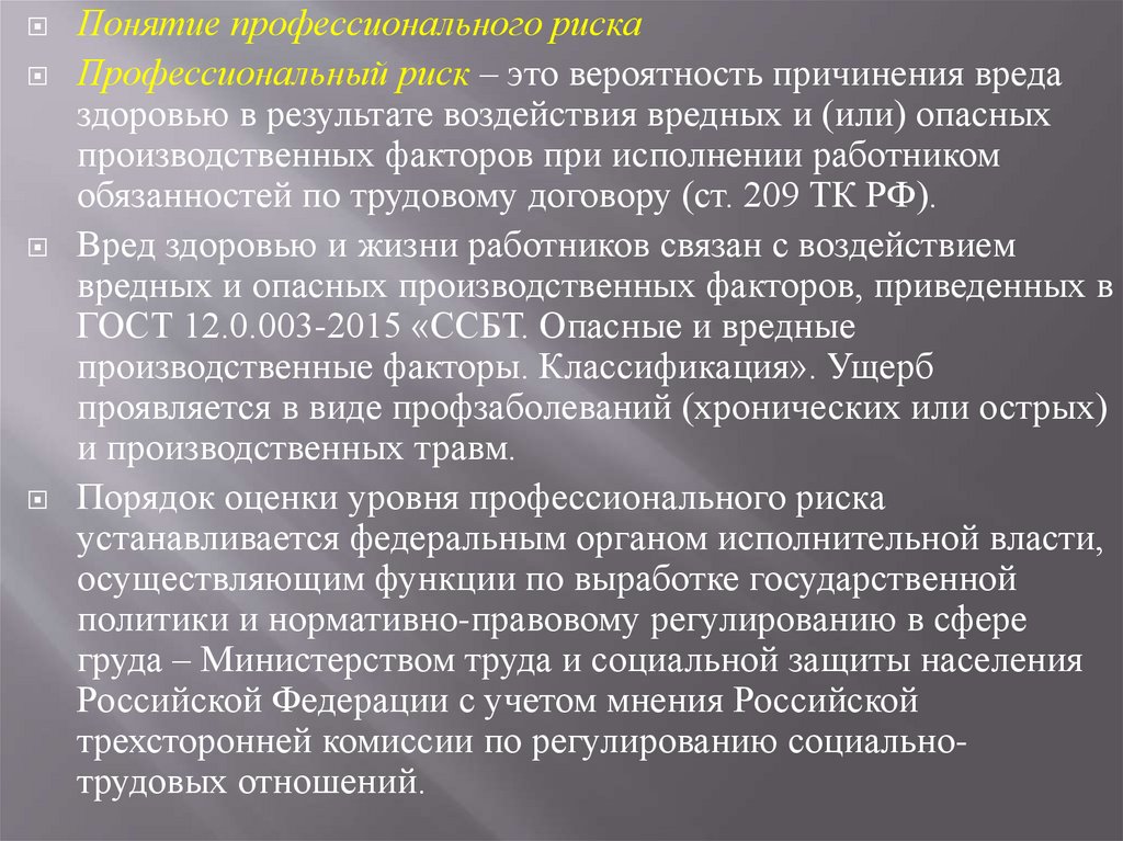 Понятие профессионального рискаПрофессиональный риск – это вероятность причинения вреда