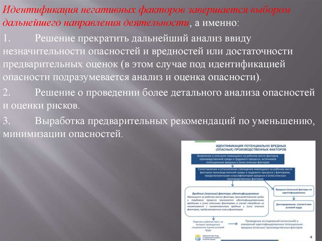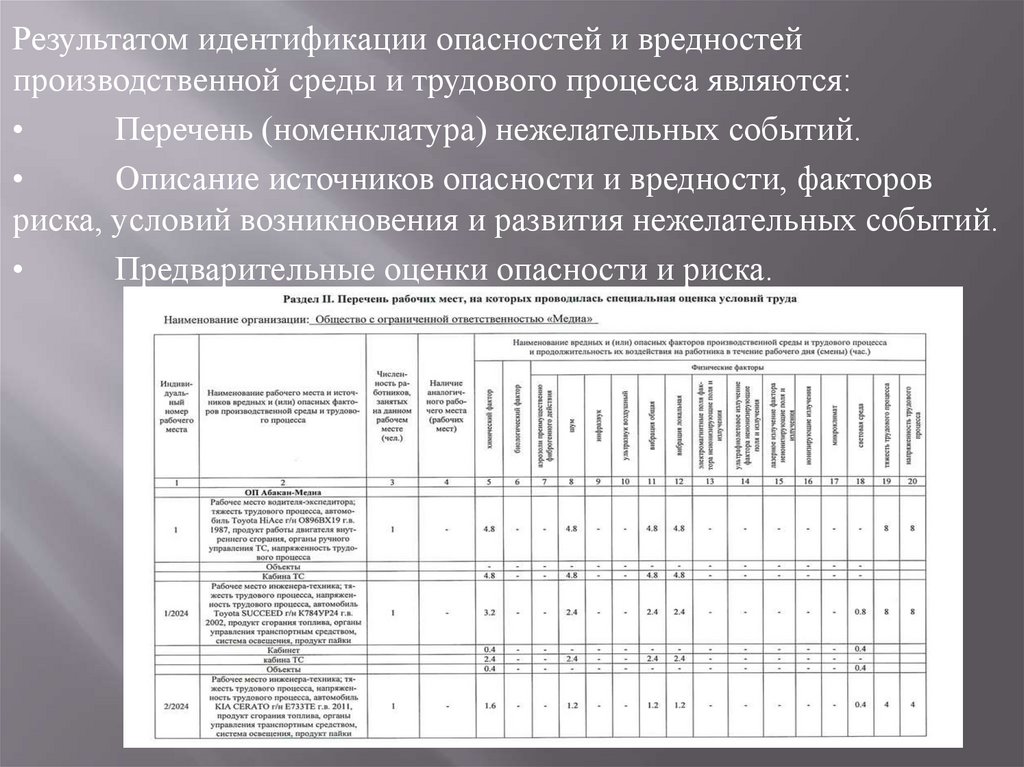 Результатом идентификации опасностей и вредностейпроизводственной среды и трудового процесса являются: