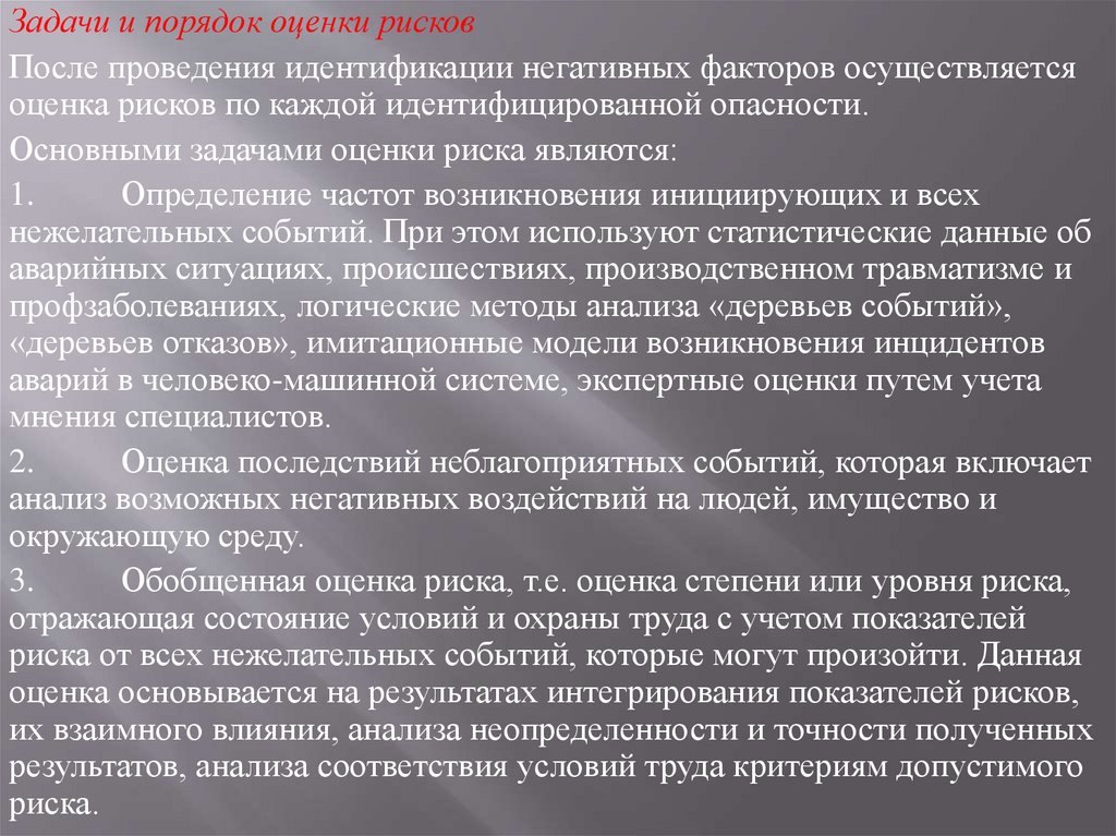 Задачи и порядок оценки рисковПосле проведения идентификации негативных факторов осуществляется