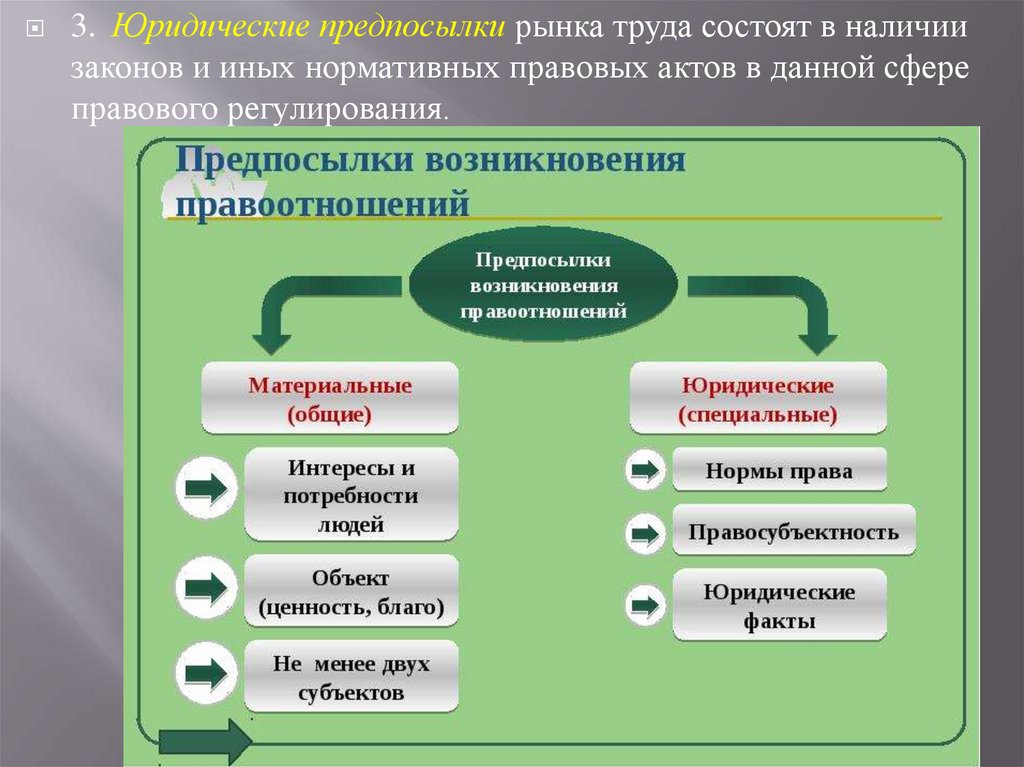 3. Юридические предпосылки рынка труда состоят в наличиизаконов и иных нормативных правовых актов в данной сфере