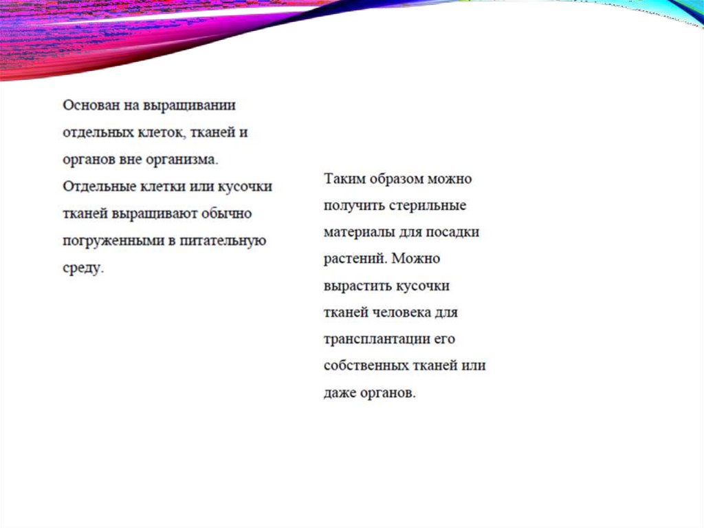 • Наблюдение, описание, измерение.• Метод культуры клеток и тканей