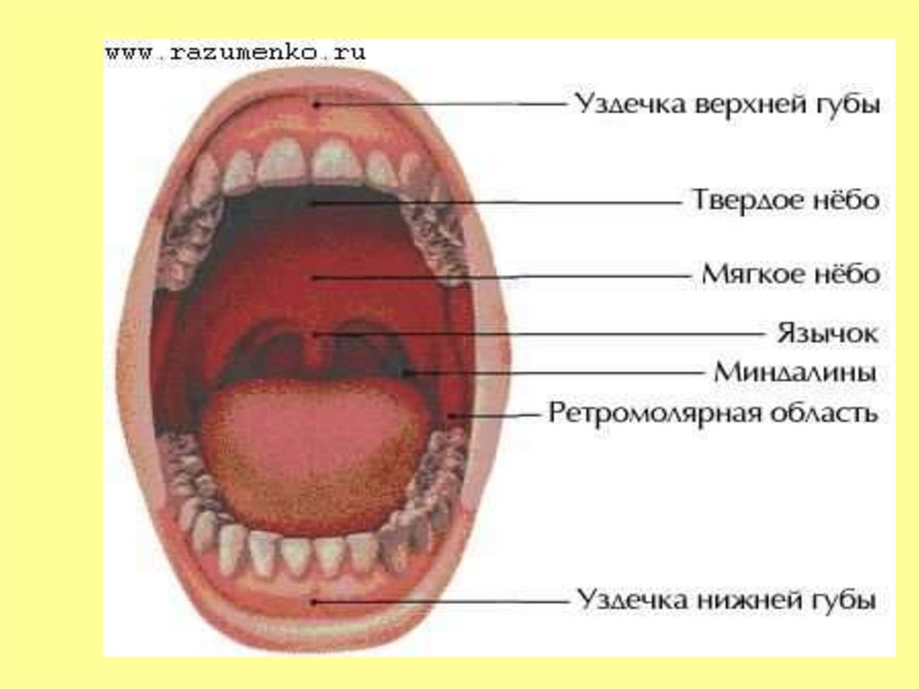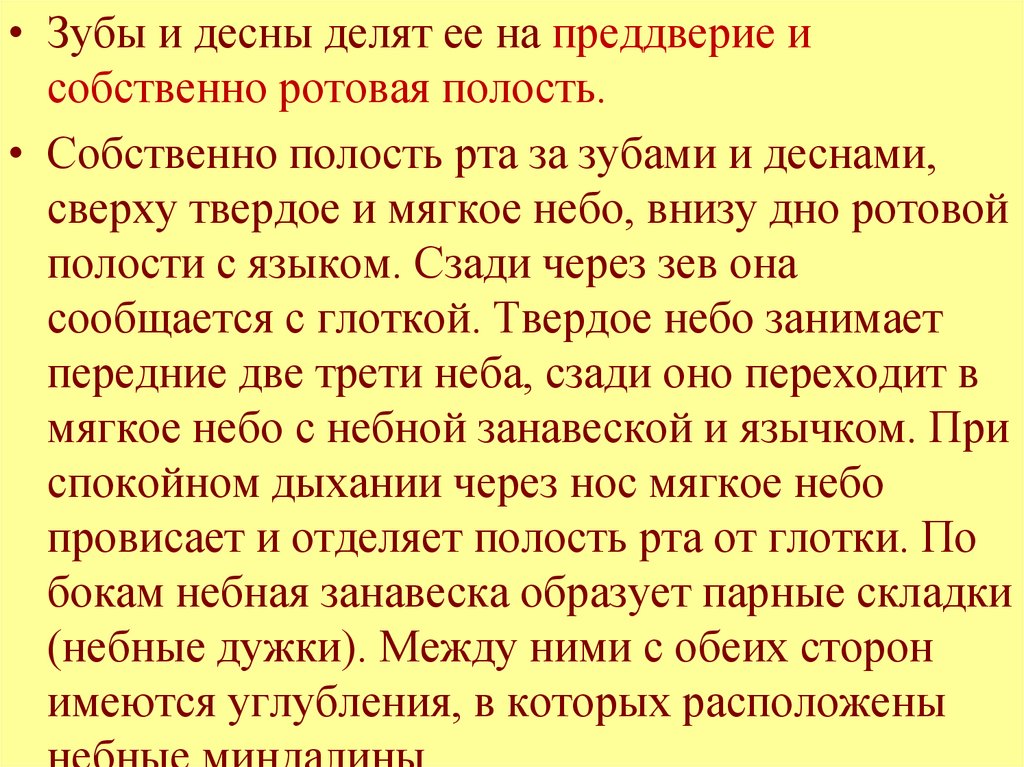 • Зубы и десны делят ее на преддверие исобственно ротовая полость.