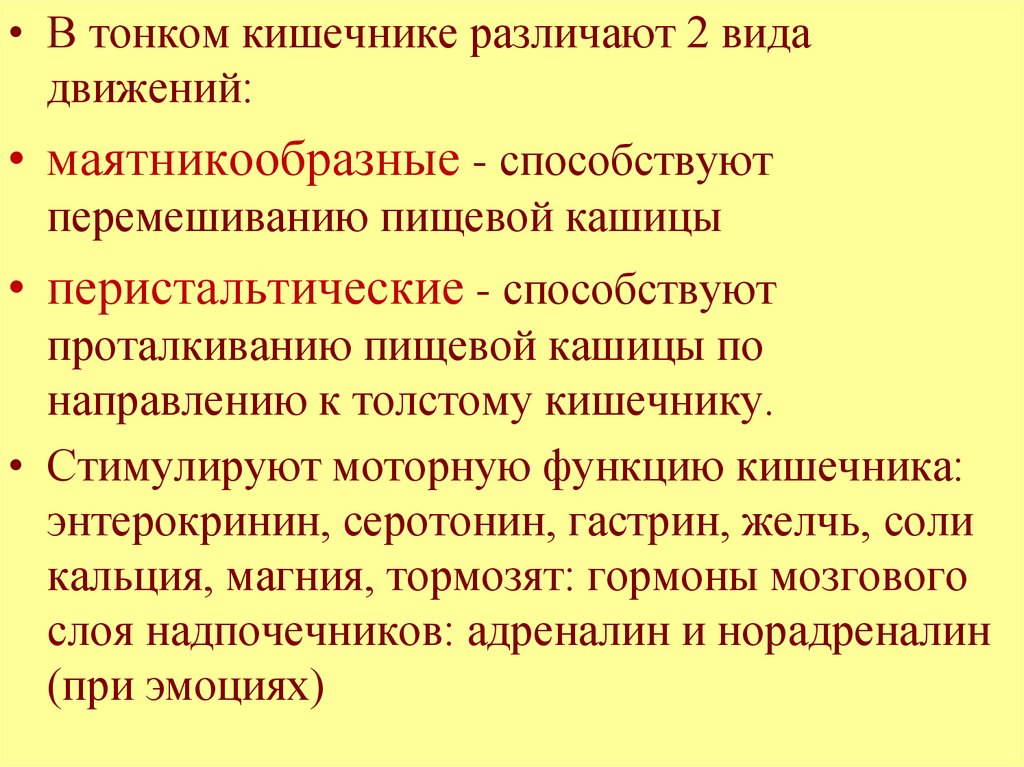• Моторная, или двигательная (жевание, глотание,передвижение (перистальтика)