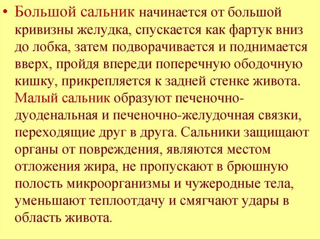 • Большой сальник начинается от большойкривизны желудка, спускается как фартук вниз