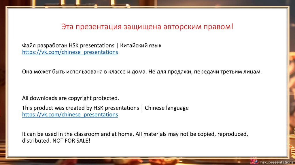 Эта презентация защищена авторским правом!Файл разработан HSK presentations | Китайский язык