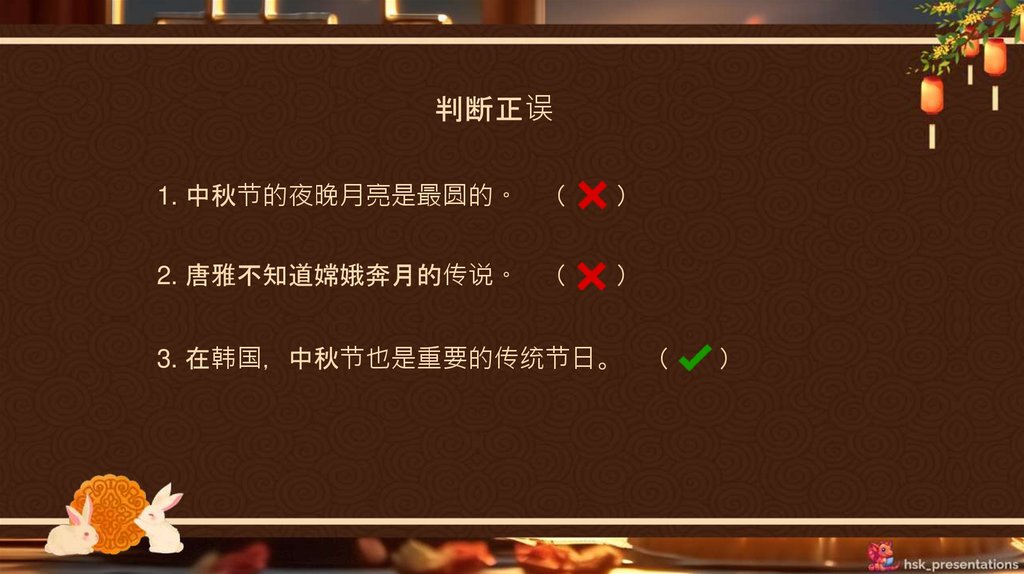 判断正误1. 中秋节的夜晚月亮是最圆的。