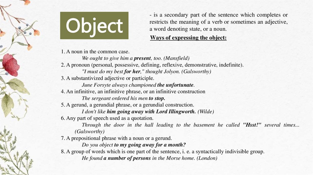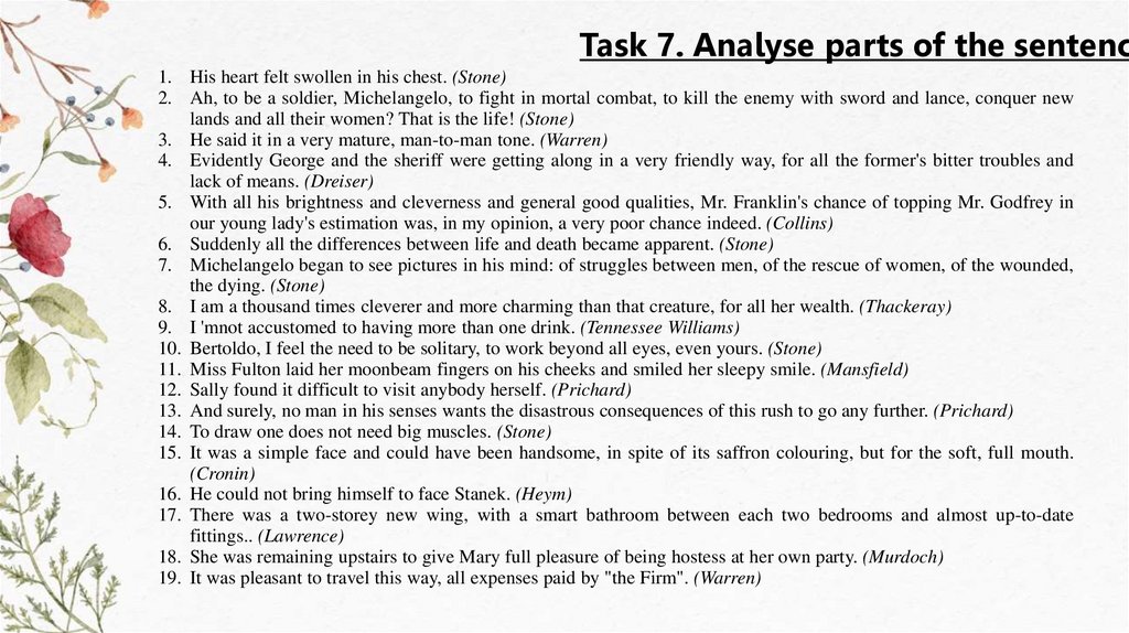 Task 7. Analyse parts of the sentenc1. His heart felt swollen in his chest. (Stone)