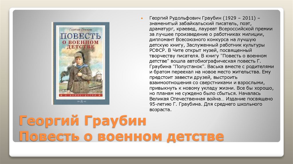 Георгий Рудольфович Граубин (1929 – 2011) –знаменитый забайкальский писатель, поэт,
