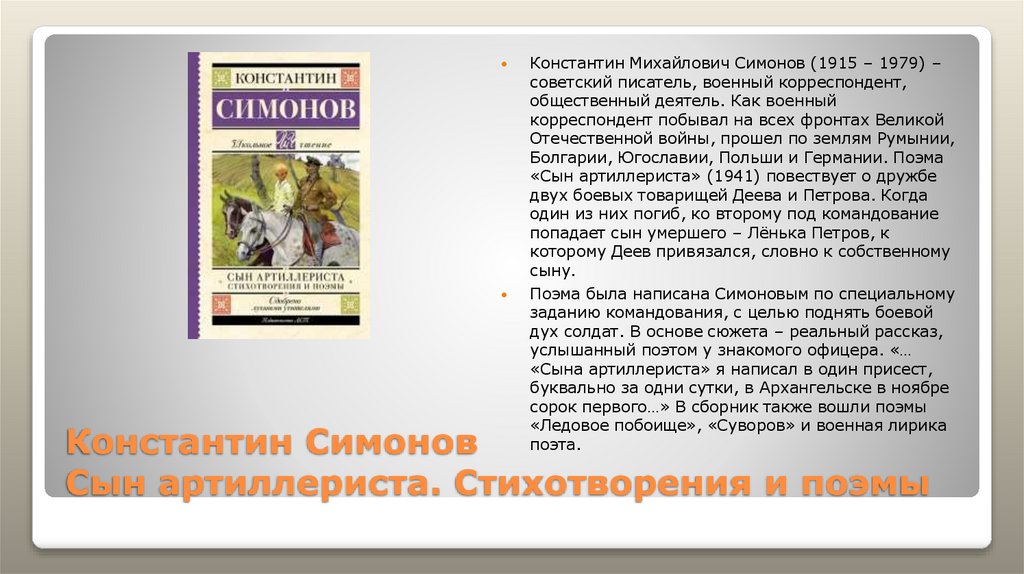 16. Константин Симонов Сын артиллериста. Стихотворения и поэмы