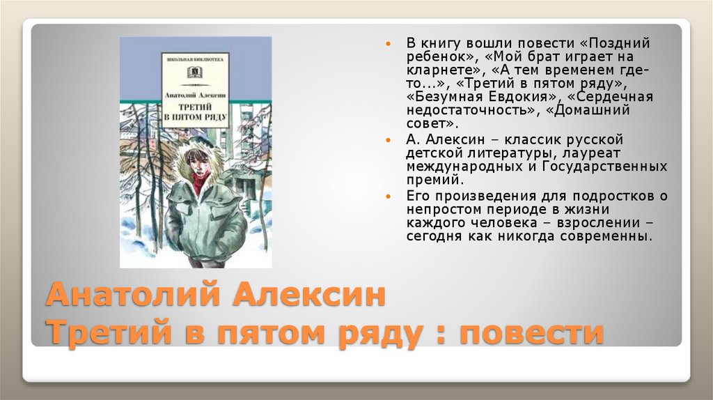 7. Анатолий Алексин Третий в пятом ряду : повести