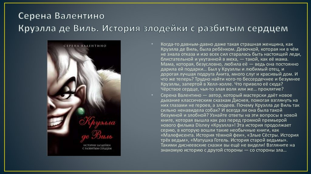 13. Серена Валентино Круэлла де Виль. История злодейки с разбитым сердцем
