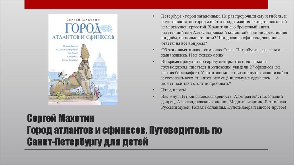 Познавательные книги 12+2. Сергей Махотин Город атлантов и сфинксов. Путеводитель по Санкт-Петербургу для детей