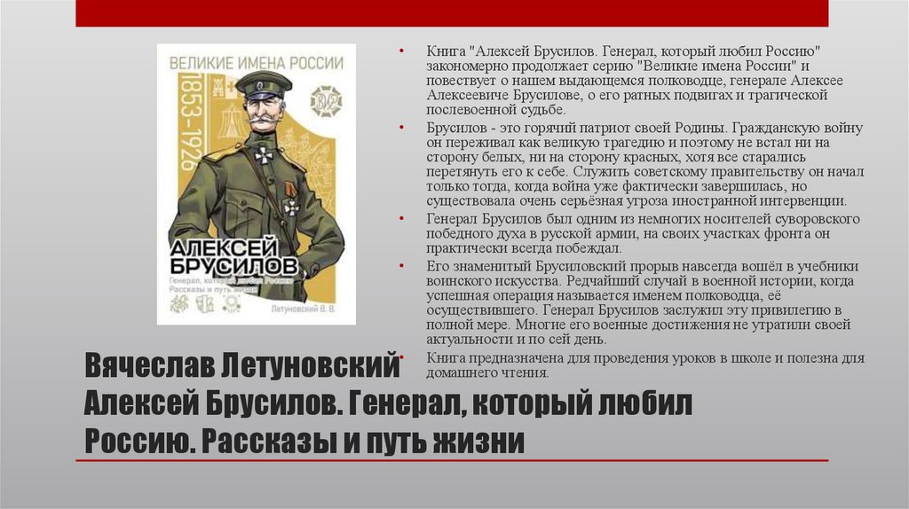 16. Вячеслав Летуновский Алексей Брусилов. Генерал, который любил Россию. Рассказы и путь жизни