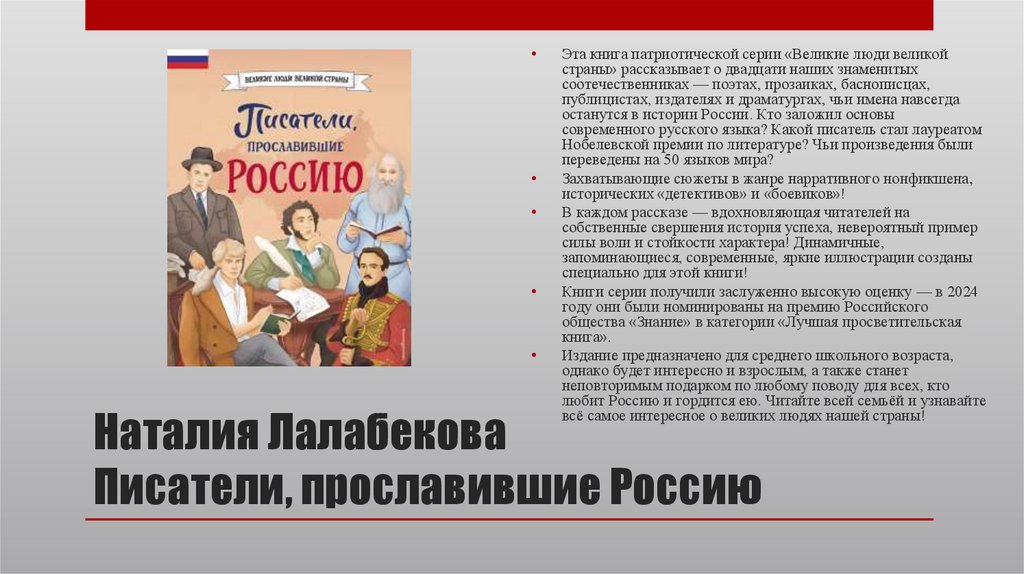 5. Наталия Лалабекова Писатели, прославившие Россию