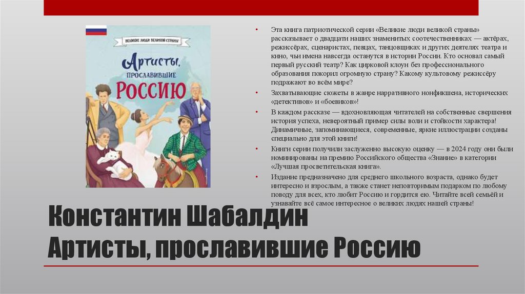 рассказывает о двадцати наших знаменитых соотечественниках — актёрах,
