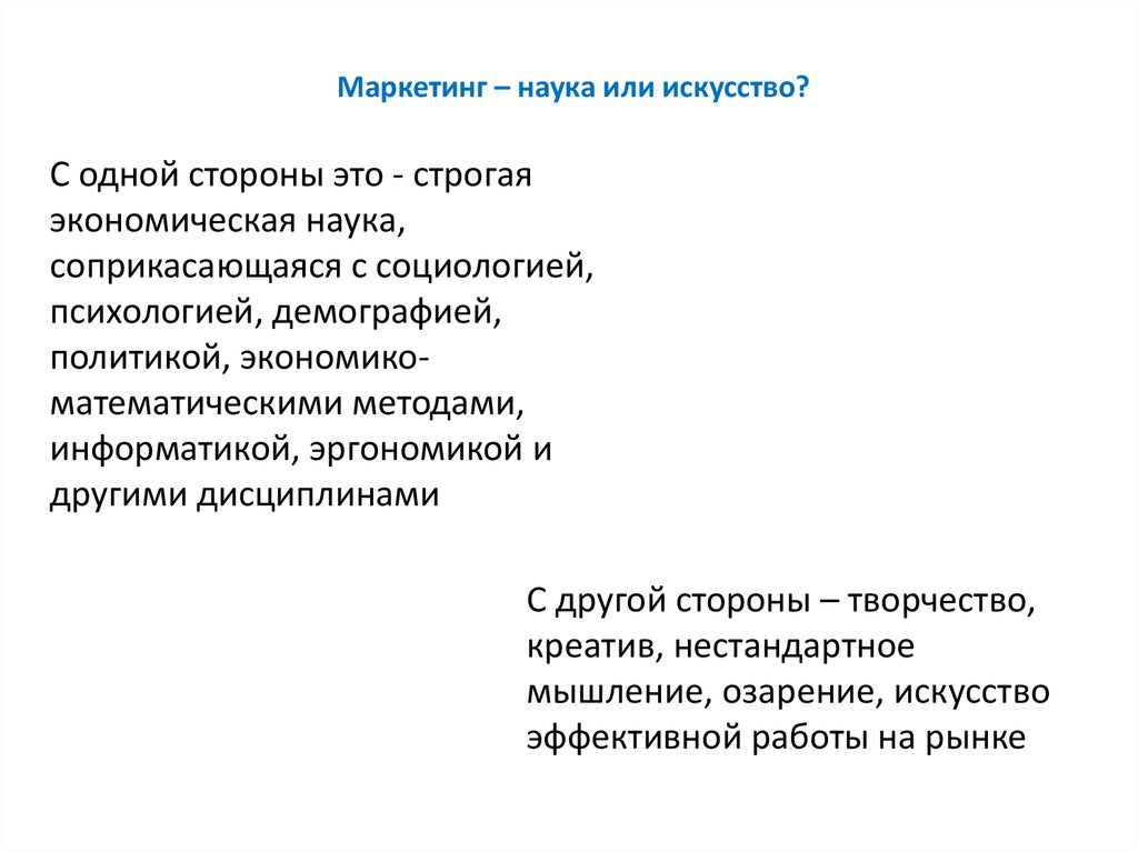 Маркетинг – наука или искусство?С одной стороны это - строгая